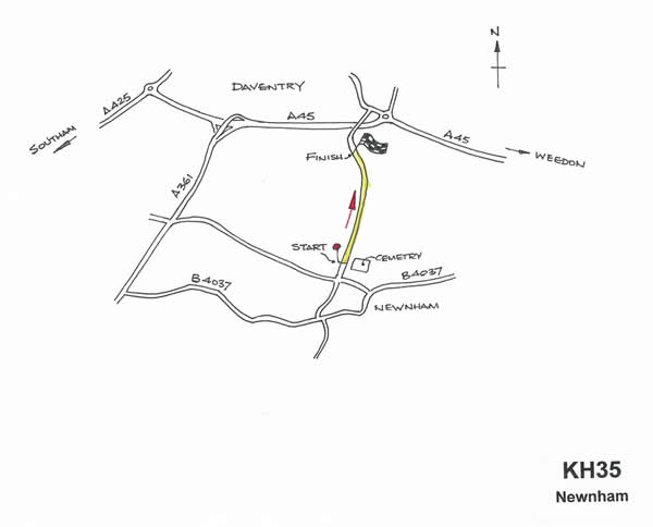 - Weedon Bec road. Ride northwards up hill